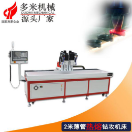 多米熱熔鉆攻機采用自主研發(fā)CNC數控系統,無需編程可直接導“CAD”圖檔生成程序。雙主軸分別裝夾熱熔鉆頭和擠壓絲錐,一次裝夾完成拉伸孔和攻絲兩道工序,節(jié)省時間的同時也避免二次裝夾帶來的誤差。熱熔鉆攻機主軸添加散熱裝置,因為熱熔鉆是通過特殊的熱熔鉆頭部與產品表面摩擦鉆孔,會有700~800度上下的高溫,主軸加散熱裝置,可以降低連續(xù)鉆孔而產生的熱量,也可以延長熱熔鉆的壽命,最主要還可以保證熱熔鉆攻機的主軸(內部結構的刀桿和本體)不會因過高的溫度而損壞。